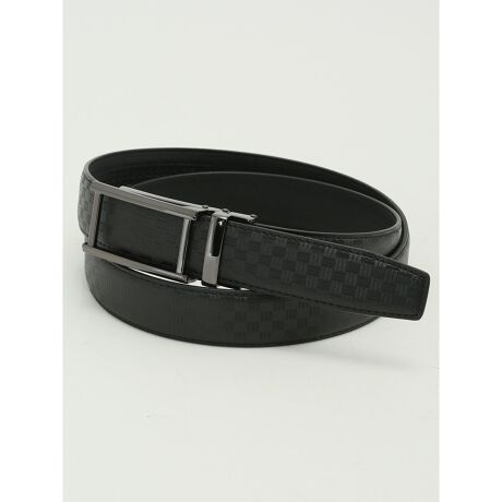 表側は市松模様の型押しをほどこした牛革レザー、裏側は合成皮革です。H型のスクエアバックルでスタイリッシュに仕上げています。シックな大人の男の装いを引き立ててくれる上質感が魅力です。