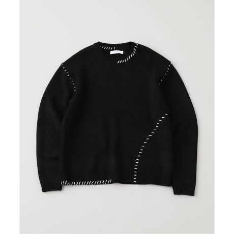 ネックラインや肩、裾まわりに配されたコントラストの効いたステッチが、シンプルなコーディネートに確かなアクセントと奥行きをプラス。