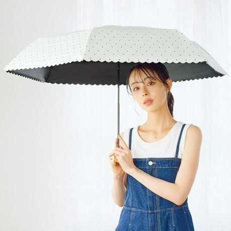 ドット柄とスカラップのフチがガーリーな折りたたみ日傘。