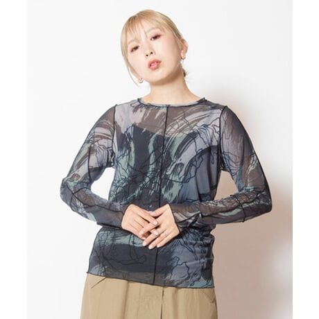 こなれたレイヤードスタイルを造るなら一枚は持っておきたい、シアートップス。===========================透け感: あり伸縮性: あり光沢感: なし裏地: なし素材について: 伸びの良い、肌触りの柔らかな軽めのメッシュ素材===========================