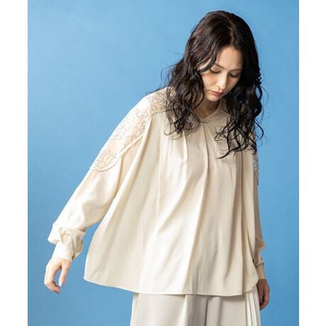 ショルダーラインに施されたレースがヘルシーな抜け感を演出。程よい光沢で、ドレスアップにも最適なブラウス。===========================透け感: ややあり(IVORY)/別地: あり伸縮性: なし/別地: なし光沢感: なし/別地: なし裏地: なし/別地: なし素材について: 落ち感とハリのバランスが良い、しなやかなブラウス地===========================