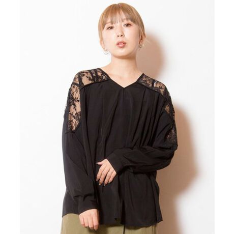 ショルダーラインに施されたレースがヘルシーな抜け感を演出。程よい光沢で、ドレスアップにも最適なブラウス。===========================透け感: ややあり(IVORY)/別地: あり伸縮性: なし/別地: なし光沢感: なし/別地: なし裏地: なし/別地: なし素材について: 落ち感とハリのバランスが良い、しなやかなブラウス地===========================