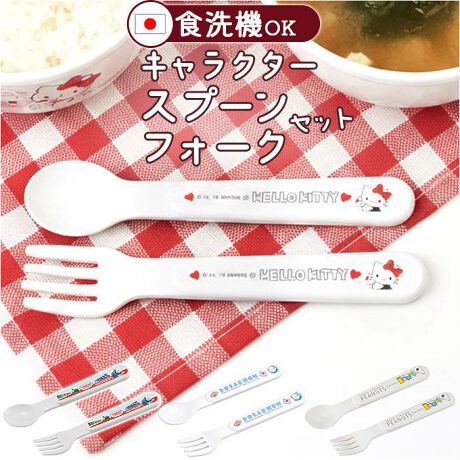 【毎日使いにぴったり】キャラクターが可愛い!食洗機でお手入れ簡単♪キッズ向けスプーン・フォークセットが登場。【便利なセット】スプーンとフォークがセットになっているから、届いたその日からすぐに使える◎【持ちやすい】約13cmの長さが小さな手にぴったりフィットして、食べる動作をしっかりサポート♪【お手入れ楽ちん】食洗機対応だから、後片付けもラクラクで忙しい日も安心◎(※耐熱温度100度。)【安心の国内生産】 BPAフリーで日本製。お子様に人気のキャラクター柄がかわいい!毎日の食卓が楽しくなるアイテム。
