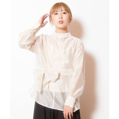 ボウタイのマルチアレンジが効くブラウスは、シアーな軽さも魅力。シーンに合わせて着こなしの幅が広がる一枚。===========================透け感: あり伸縮性: なし光沢感: ややあり裏地: なし素材について: ほんのりハリとツヤのある、軽いブラウス地===========================