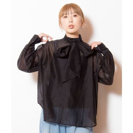 ボウタイのマルチアレンジが効くブラウスは、シアーな軽さも魅力。シーンに合わせて着こなしの幅が広がる一枚。===========================透け感: あり伸縮性: なし光沢感: ややあり裏地: なし素材について: ほんのりハリとツヤのある、軽いブラウス地===========================