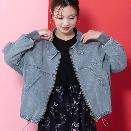華やかなお花とネコの刺繍を大きくあしらったデニムジャケット!