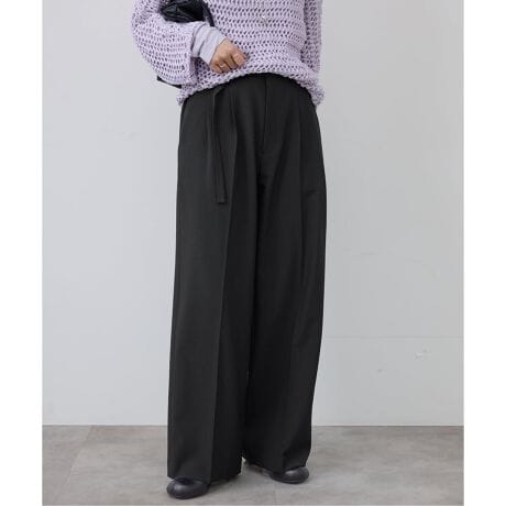 ・華奢で上品見えするようなベルテッドの2タックパンツ。
