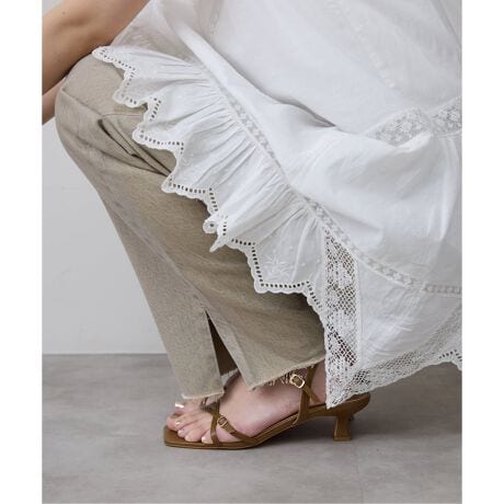リバーレースにカットワークの刺繍を施したキャミワンピース。