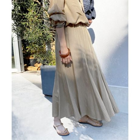 トップス問わず着られて体型カバーもできるフレアシルエット。