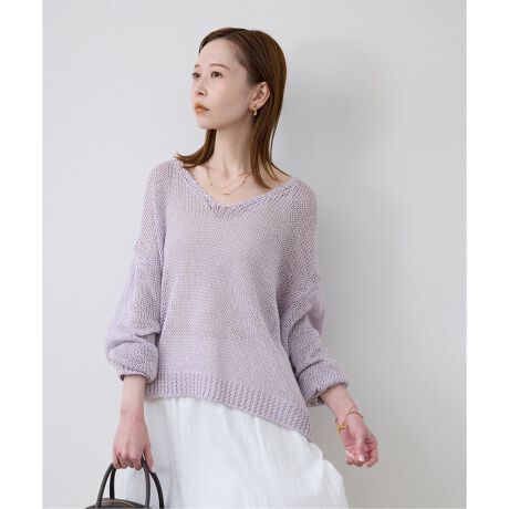 シンプルなVネックの形で袖丈がルーズな見え感に。