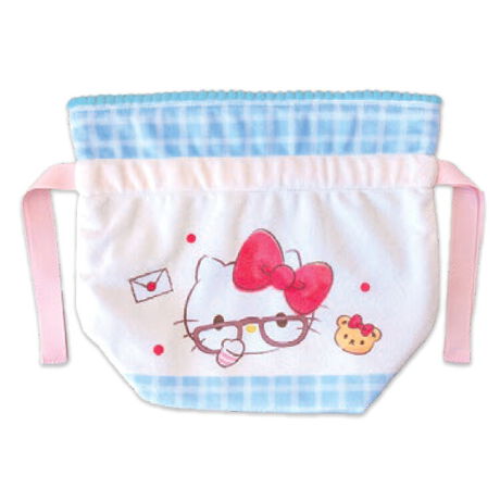 ハローキティ ふわふわ巾着ポーチ(ブルー/50th)