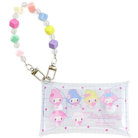 マイメロディ ビーズチェーン付きクリアマルチケースS 50th(整列/ガーリーポップハート)