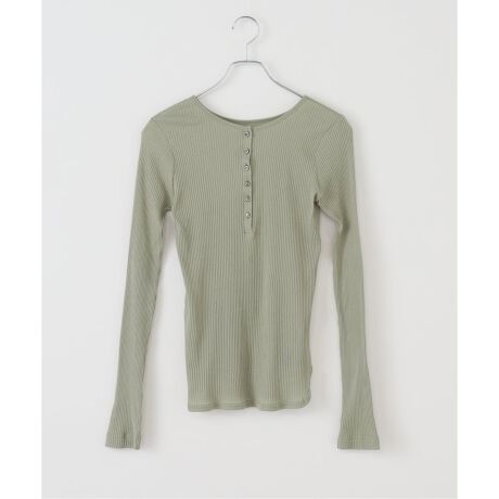 上品な透け感が素敵なテレコヘンリーネックカットソー。
