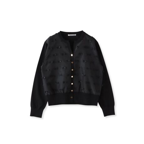 前身頃にのみカットジャカード生地をあしらった、上品で華やかなニットカーディガン。