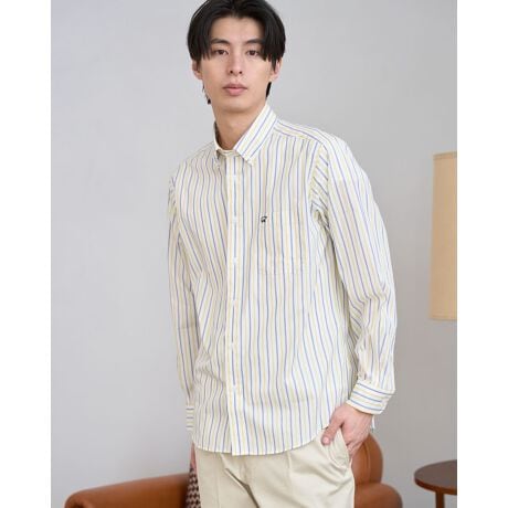 トラッドスタイルを品良く格上げする、ストライプ柄のボタンダウン襟シャツ。