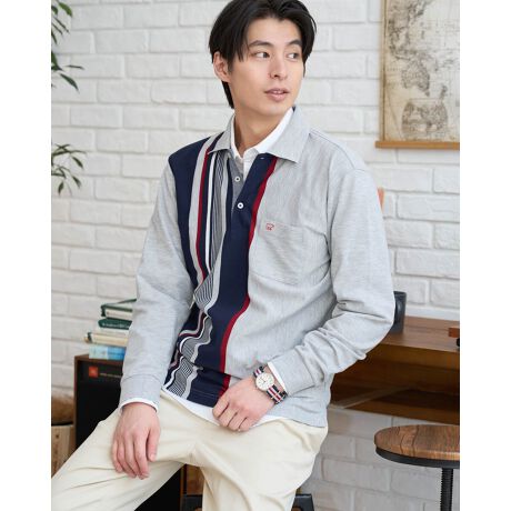 長袖ストライプポロシャツ