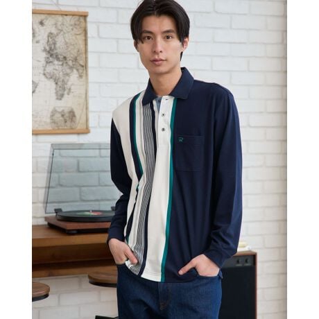 前身頃の表情豊かなストライプ組織とのコントラストが、こだわりを知る大人の感性を満たす、高品質なプロダクトです。