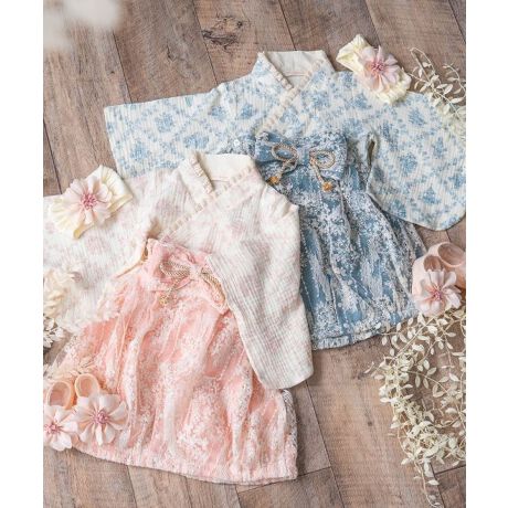 ガーゼ×レース ベビー袴ロンパース