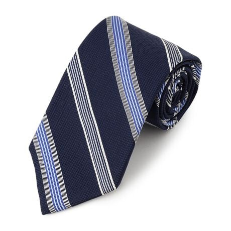 スタイリングをぐっと引き立てるスパイスストライプシリーズ組織を細かに変化させながら織り上げた表情豊かな質感のストライプネクタイです。スーツやジャケットのVゾーンをさりげなくリッチに魅せたいときにスタイリングの素敵なスパイスとなってくれます。