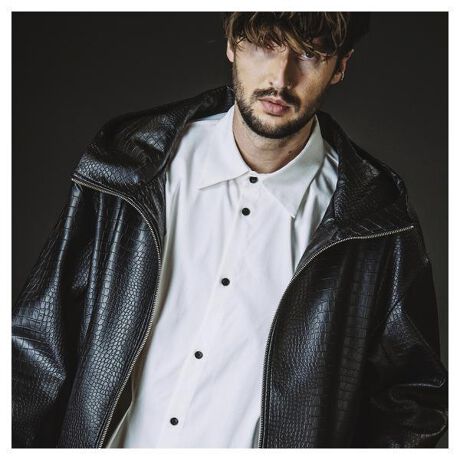 シンセティックレザーのスムースとクロコダイル型押しを組み合わせた、春先に最適なフーデッドブルゾン。