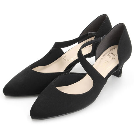 シャープなポインテッドトゥと、足元をすっきり見せるセパレートデザインが魅力のパンプス。