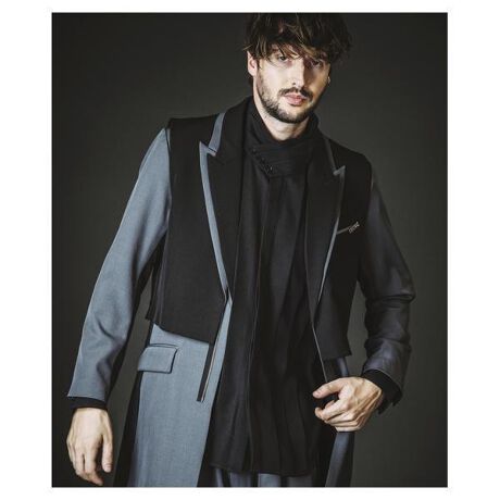 ショートベストをドッキングしたレイヤードチェスター