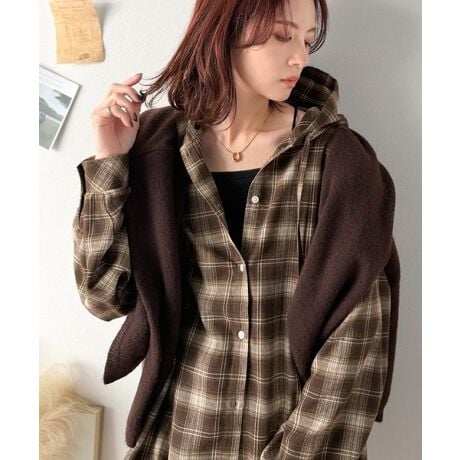 ふんわり抜け感をまとう、大人のためのチェックシャツパーカー。