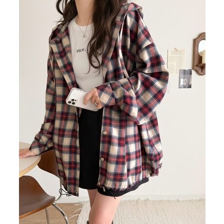 さっと羽織るだけでこなれ感が生まれる、ゆったりシルエットのチェックシャツパーカー。