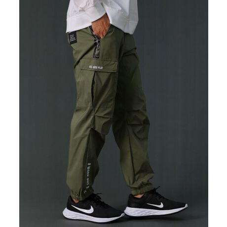 R/撥水加工ストレッチ布帛レギュラーシルエットジョガーカーゴパンツ