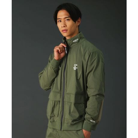 フロントは着脱がスムーズなジップフライ仕様。ファスナーには止水ジップを採用し、機能性にもこだわりました。ネックは上品な印象と機能性を兼ね備えたハイネックデザインで、ゴルフ場などのシーンにも最適です。左右に配置した存在感のある大きめのフラップポケットは、横からもアクセスできる二重構造。両サイドのポケット口にはファスナーも取り付け、ゴルフやテニスのプレー中にボールを収納できる便利な機能もプラスし、デザイン性と実用性を両立しました。