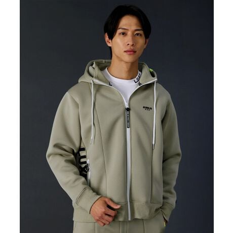 ソフトなスポンジボンディング生地を使用した、スポーティさとデザイン性を兼ね備えたジップアップパーカー。