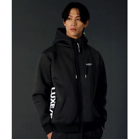 ソフトなスポンジボンディング生地を使用した、スポーティさとデザイン性を兼ね備えたジップアップパーカー。
