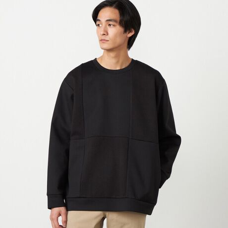 前身頃切り替えにヘリンボーンジャガードを使用してブロッキングデザインをしたプルオーバーです。