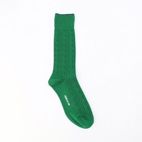 立体的でトラディショナルな編み模様が施されたケーブル編みソックスです。