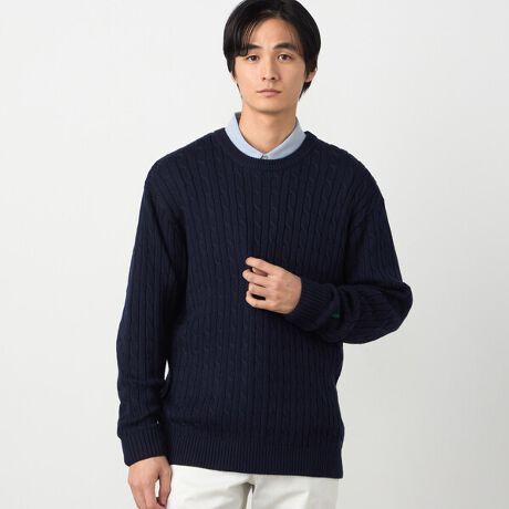 ミドルゲージ(7ゲージ)のケーブル柄クルーネックプルオーバーです。