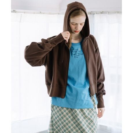 たっぷりとした袖のボリュームに短め着丈のバランス感が特徴的なジップパーカー。ジップファスナーは上下から開閉できるダブルジップ仕様で、着こなしに合わせて調整が可能です。衿の高さがあるフードは、冬場も首元まで暖かく包み込みます。長めに設定した袖口のリブは、折り返して着用するのもおすすめ。コンパクトな着丈ながら、両脇には便利なポケット付きです。