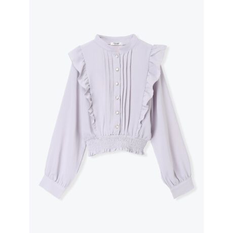 [型番:25550725898]フロントのピンタックが上品なムードを演出するブラウス。裾はシャーリング切り替えを施しているので、フィット感のある着心地を演出します。煌びやかな輝きを放つフロントボタンがアクセントに。季節の変わり目のお出かけスタイルに重宝したいアイテムです。モデル(ベージュ着用)身長:160cmMサイズ着用