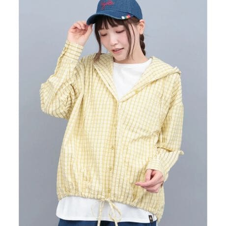ふんわり軽いフード付きチェックシャツ。