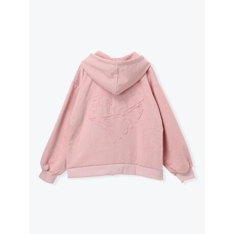 バックに施されたハート型のロゴがアクセントになった裏毛ジップパーカー