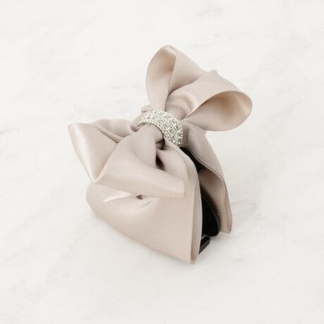 クリップ本体はバンス仕様で髪をしっかりホールドしつつ、リボンの柔らかなフォルムが顔まわりに女性らしいアクセントを添えます。