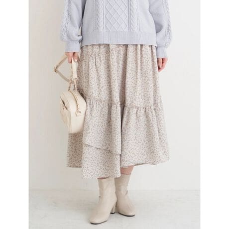 レトロなムードの小花柄が着映えするフェミニンムードたっぷりなスカート。
