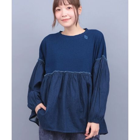 デニムとインディゴ天竺を組み合わせた、異素材ミックスが魅力のプルオーバー。