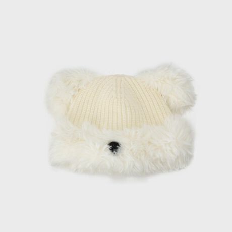 くるんとした毛足が可愛いプードル風デザインのニット帽。