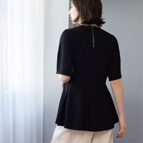 ・ペプラムシルエットが華やかなニットプルオーバー。