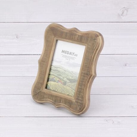 暖かみのある木と手彫りによる滑らかな素材の存在感のあるフォトフレームです。