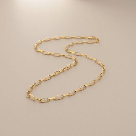 ボリューム感のある長角のチェーンを繋げた中空MVロングチェーンネックレス。