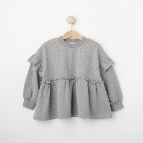 ラメがキラキラと特徴的な、ラメ裏毛のペプラムトップス。