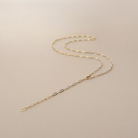 ロングチェーンネックレスとしての着用はもちろん、途中のコマに引き輪を掛けてYネックレスとしても着用できるデザインです。