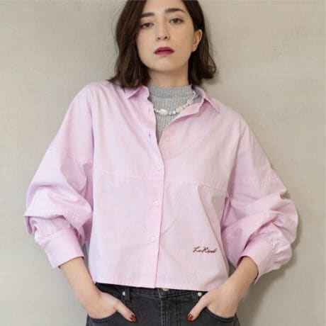 裾にあしらった刺繍ロゴがポイント。コットン100%のオックス生地を使用したフォルムシャツ