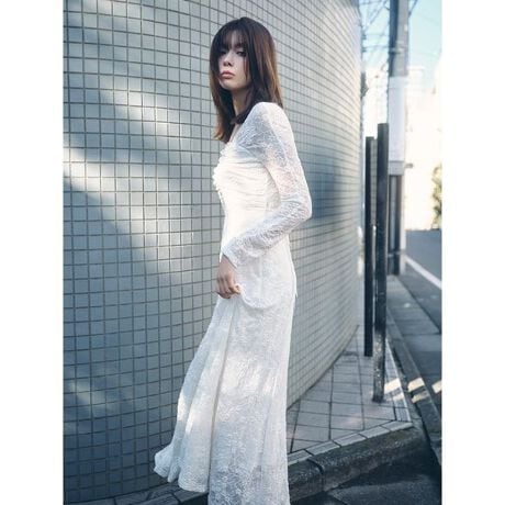 小花柄のストレッチレースを使用したワンピースで、洒落た甘さをまとって。